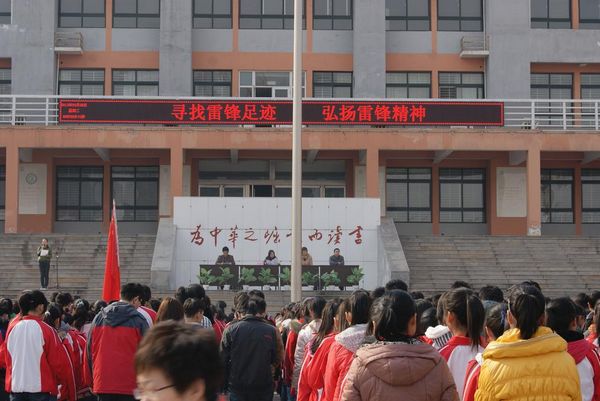 在启动仪式上,教师和学生代表分别进行了表态发言,并倡议全体师生要进一步挖掘雷锋精神的时代内涵,彰显雷锋精神的当代价值,使学雷锋活动常学常新,扎实有效。孔校长要求,系列主题教育活动要坚持面向全体师生、充分调动师生踊跃参与的积极性,极大增强活动的实效性。各班要召开一次“雷锋精神在闪光”主题班会、办一期高质量的“学雷锋精神,做文明学生”黑板报和手抄报、开展一次有益社会或帮助老人的实践教育活动等。还要多运用同学们喜闻乐见的方式,多搭建便于同学们参与的平台,吸引广大学生踊跃参与到学雷锋活动中来。还要充分发挥广大教师的积极性和创造性,认真抓好组织实施,确保系列活动各阶段任务落到实处。