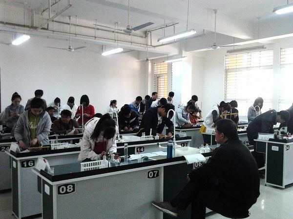 据悉,自本学期开学以来,该校就加大了学生实验操作的力度,严格按照中招实验教材的要求组织学生进行实验。临近中招,学校教导处周密部署本次模拟考试。全体初三学生1108人,按照每组24人分组实验,每组考试时间需15分钟,所有理化生老师作为监考教师,分两个考场同时进行。考试从上午10:00开始,一直持续到下午5:30,严密按照中招考试的程序进行。从领取准考证号到抽签获取实验台号,再到进入考场由监考教师根据学生实验的质量给学生打分。整个考试秩序井然有序,有条不紊。