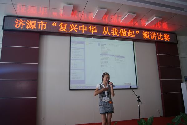 近日,济源市教育系统“复兴中华,从我做起”主题演讲比赛拉开帷幕,来自全市高中和初中的16名选手参加了比赛。经过激烈角逐,济源市沁园中学学生常欣月凭借丰富生动的内容、大气庄重的表现、自然流畅的表达打动了现场的评委和观众,取得全市“复兴中华,从我做起”演讲比赛第一名。