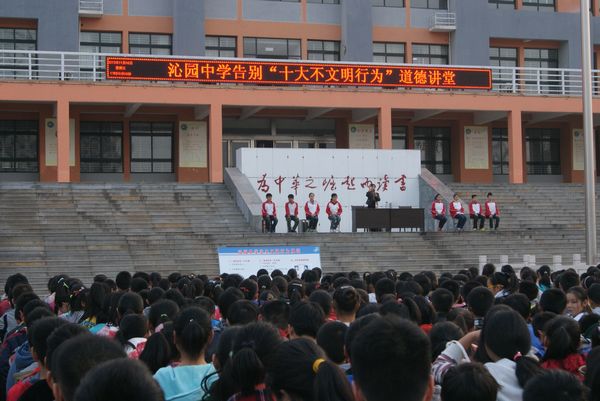为切实抓好十大不文明行为整治活动,沁园中学以文明素质教育和创建全国文明城市为切入点,多措并举,把“十大不文明行为整治”的热情融入到日常学习生活中,从自身做起,以实际行动远离不文明行为,唱响了文明和谐新曲。