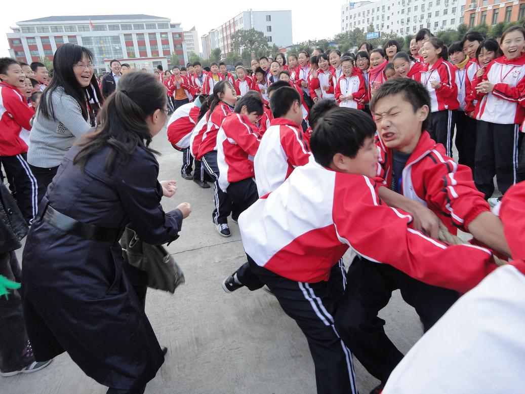 为了更好地营造学生校园课外活动氛围,让学生健康学习、快乐成长。沁园中学西苑周二至周四下午活动堂举行了声势浩大的七年级学生拔河比赛。在振奋人心的加油声中,西苑七年级学生的拔河比赛如火如荼。全体同学们克服了体力和精神上的压力,表现得勇敢而坚强,在“一二,一二”的强有力节奏下奋力地拼搏着并最终夺冠。