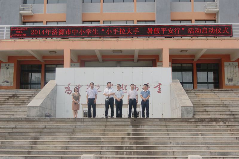 在启动仪式上,与会领导向学生代表发放了安全宣传资料和安全知识手册。济源市沁园中学学生代表全市中小学生宣读了暑假中小学生安全公约。家长代表作了表态发言,并承诺:积极做好学校的坚强后盾,与学校一起努力,做好学生的暑假安全教育工作。最后,济源市教育局局长于琳做了重要讲话。他指出,生命,只有安全,才能永葆活力;幸福,只有安全,才能拥有魅力,希望广大中小学生要牢记暑假安全公约,提高自我保护意识,增强自我保护能力,远离危险区域,自觉遵守国家法律、社会公德,积极参加社会公益活动、实践活动,也希望广大家长做好监管,当好坚强后盾,与学校一起为孩子构筑一道安全幸福的防护网,使学生快快乐乐的渡过一个安全、文明、有意义的假期。